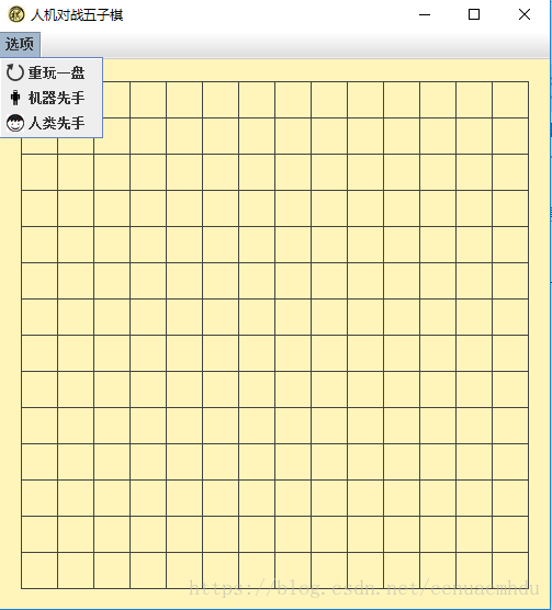 //棋盘还没有落子的时候可以选择“人类先手”,一旦有落子,选择“人类先手”失效