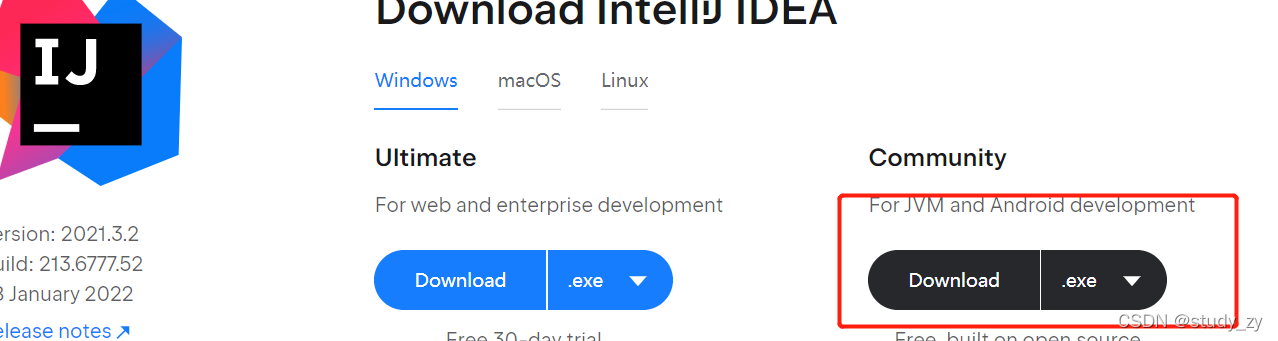 1.下载社区版(2021.3.2版本)
