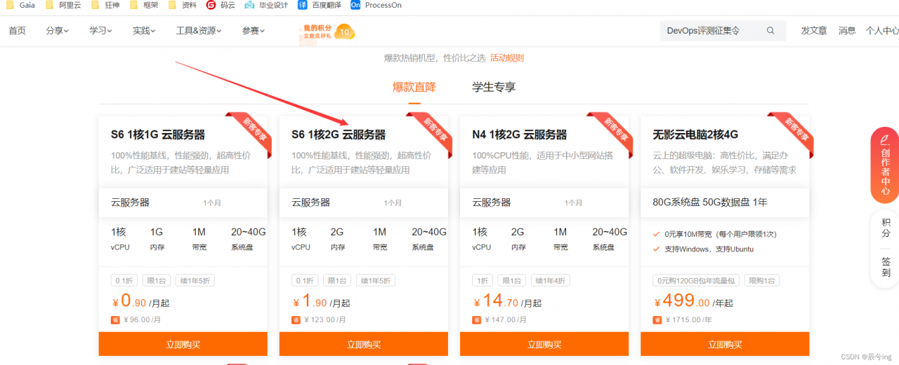 进入阿里云官网点击云服务器ECS→创建实例→选择自己想买的服务器配置信息(选择下面两样就可以了)