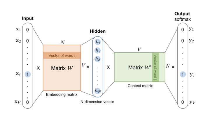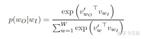 其中,w O w_OwO 代表 w t + j w_{t+j}wt+j,被称为输出词;w I w_IwI 代表 w t w_twt,被称为输入词。