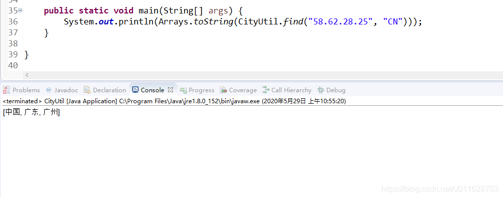 System.out.println(Arrays.toString(CityUtil.find("58.62.28.25", "CN")));