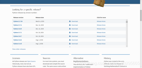 选择python的版本进行下载(注意:根据电脑是64位还是32位选择下载)