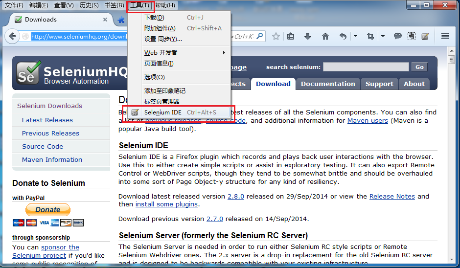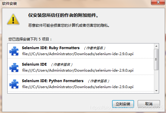 3. 我们可以通过给火狐或者谷歌浏览器安装插件来录制操作,从而生成一段test case,以下是火狐安装,火狐版本