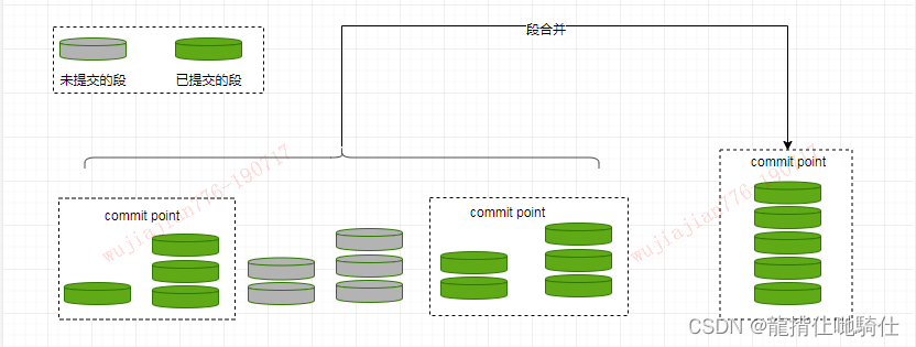 一个段一旦拥有了提交点,就说明这个段只有读的权限,失去了写的权限。相反,当段在内存中时,就只有写的权限,而不具备读数据的权限,意味着不能被检索。