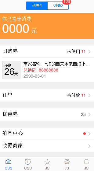 CSS组件包括按钮,列表,表单,通知,提示条,弹出框,选项卡,等级图标,角标,红点,1px解决方案等。