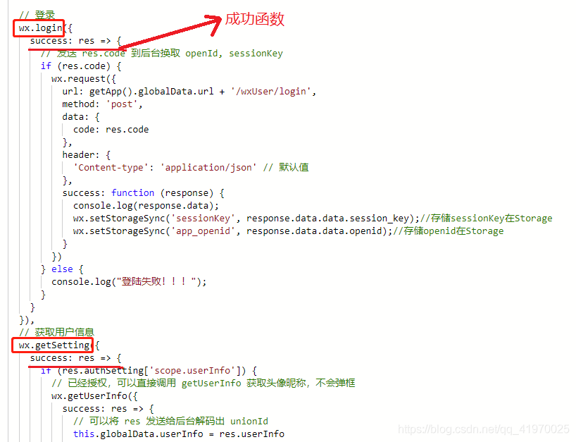 所以在 wx.xxx() 的括号中,只需编写success函数和fail函数