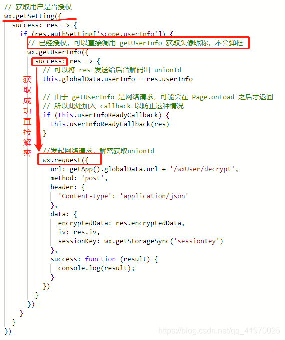 //发起网络请求,解密获取unionId