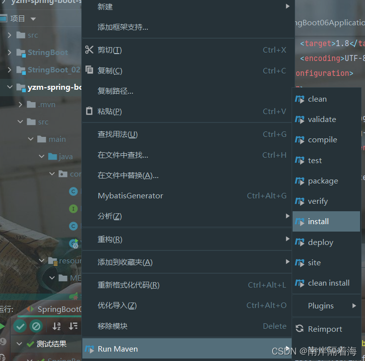 <dependency> <groupId>org.springframework.boot</groupId> <artifactId>spring-boot-configuration-processor</artifactId> <optional>true</optional> </dependency><plugin> <groupId>org.springframework.boot</groupId> <artifactId>spring-boot-maven-plugin</artifactId> <version>2.4.1</version> <configuration> <classifier>exec</classifier> </configuration> </plugin>9.右键该启动器并且install
