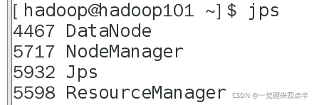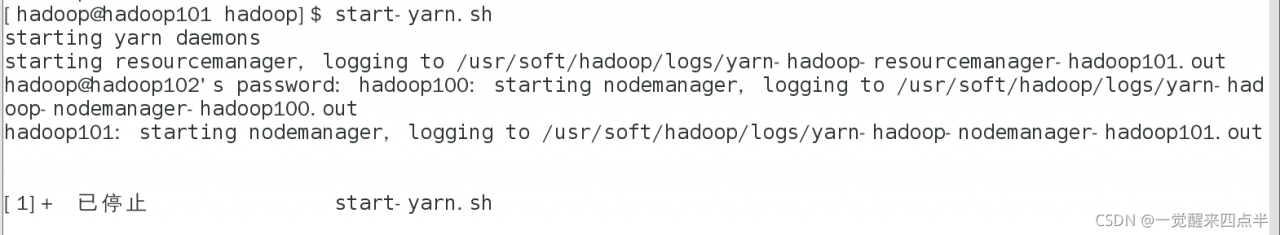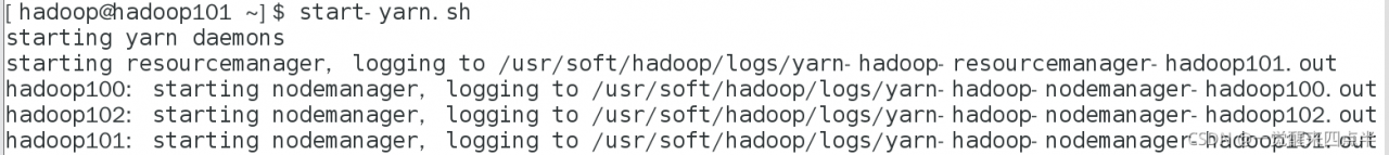 接着我们启动yarn,注意我们需要在Hadoop101上面启动yarn