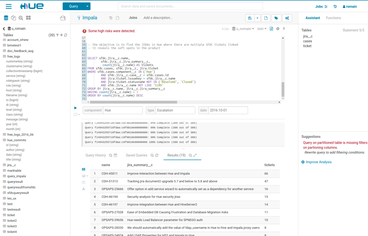 至于开源的IDE嘛,比如HUE,大家应该不陌生了,虽然,全称 “Hadoop User Experience”,也是相当的直白,然而缩写完的名字,相比各种Data XXX,逼格立分,隐隐透着一点清新脱俗的味道。