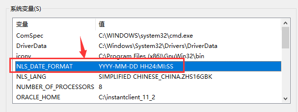 --方法3:在window 添加环境变量NLS_DATE_FORMAT,值:YYYY-MM-DD HH24:MI:SS--