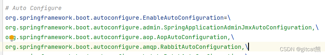 }上面方法的核心是调用getAutoConfigurationEntry,而getAutoConfigurationEntry又会调用getCandidateConfigurations,这里的调用链还是挺长的,可以去看下源码,最终会调用到这个方法loadSpringFactories,这个方法就会读取META-INF/spring.factories文件,读取并解析这个文件后,会把这个文件中key为org.springframework.boot.autoconfigure.EnableAutoConfiguration的所有类加载进来,而key org.springframework.boot.autoconfigure.EnableAutoConfiguration对应的value值通常都是一些@Configuration标注的配置类,这样在配置类中定义的一些配置就能生效了。