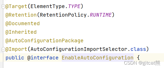 这个注释的核心在@Import(AutoConfigurationImportSelector.class),而AutoConfigurationImportSelector是实现了DeferredImportSelector,DeferredImportSelector继承了ImportSelector,至于@Import是如何发挥作用的,我们后面再说,这里只需要知道,@Import中如果传入的是一个ImportSelector的实现类,springboot就会自动调用这个实现类的selectImports方法,这个方法返回一个String数组,数组中是class类名,springboot会根据这些class类名生成单例bean注册到容器中。