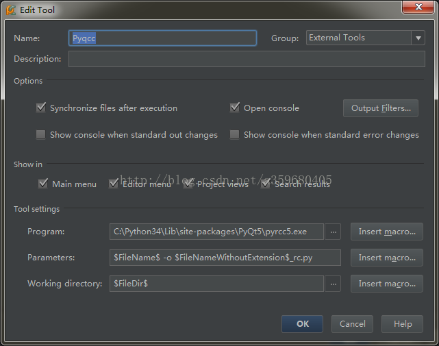 最近用到了资源文件,资源文件需要用pyrcc5.exe转码,配置方式如图