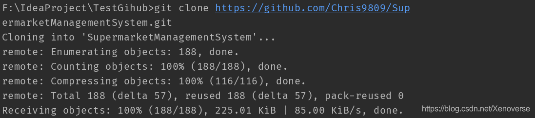 复制这个连接,我们在idea的命令行里面输入下面这个指令,我们就可以把我们的项目上传到我们刚刚新建的远程仓库添加上去