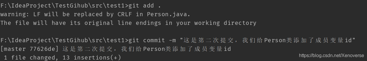那我们就搞点事情,让他有所记录,我们再看看这个仓库的状态是否有改变,我们再test1里面创建一个叫Person的类