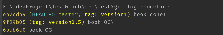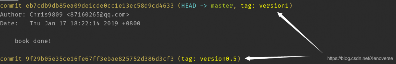 现在来查看log的时候,可以看到每个commit的后面都有标签信息