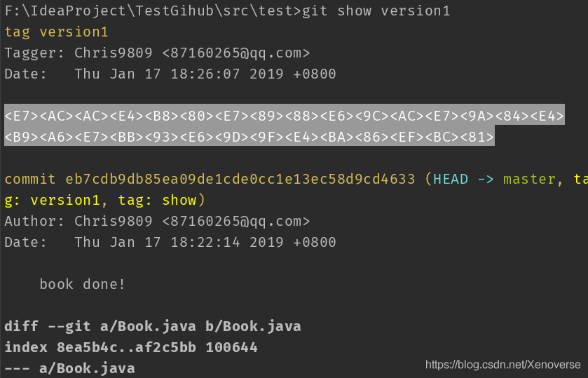 这个时候假如,我们觉得最近这一次的操作真的很重要,我们需要给这次的提交起一个名字比如叫做version1