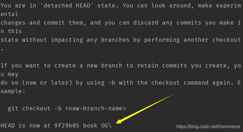 注意最后一行,这个HEAD就相当于是指向当前正在处理的commit的一个指针,或者理解为文档处理的一个“光标”