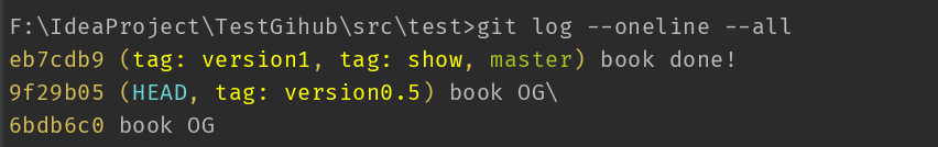通过log来查看,可以明显的看到,当前正在处理的commit就是标签为version0.5的这个commit
