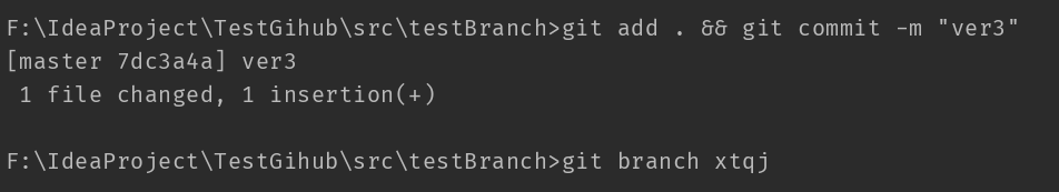 在我们这次提交这个节点上,我们创建一个分支点叫做——xtqj。