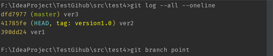 同时进入这个点,当然我们也可以用指令git checkout -b point