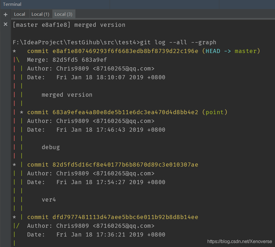 我们图形输出一下,清楚的可以看到,两个分支最后合并为一条主线