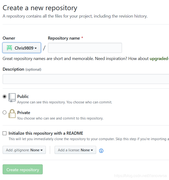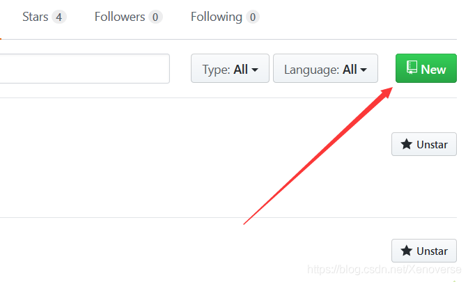 首先打开github的个人主页中的your repository,(你得先注册登录),然后new一个远程repository