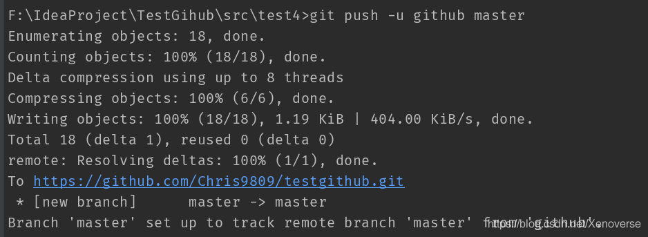 前面是服务端的名称,后面是需要提交的分支名称,我们这次提交的是master。