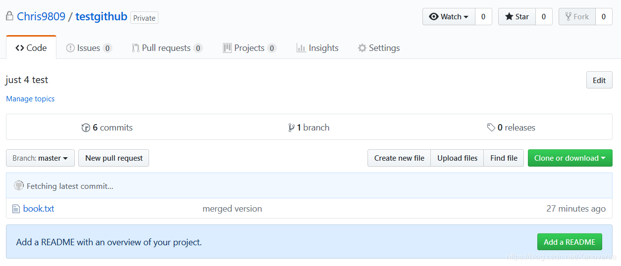 回到github这个连接,我们就可以看见我们的远程仓库中已经有了内容