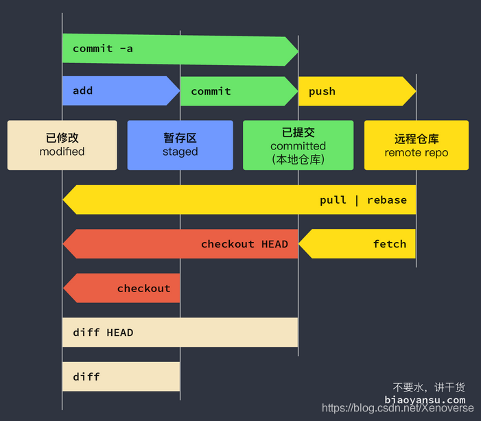 总结,结合biaoyansu的网站内容,可以浏览一下上述过程提到的一些操作和关于git的概念。