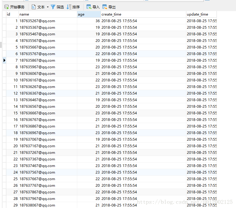 INSERT INTO students_table(id,`name`,age,create_time,update_time) VALUES(i,CONCAT(student_name,'@qq.com'),ageVal+18,NOW(),NOW());