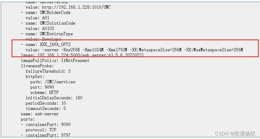 1.调整完内存CPU信息后,UMC云管理平台会自动生成JVM配置信息,配置内容如下。