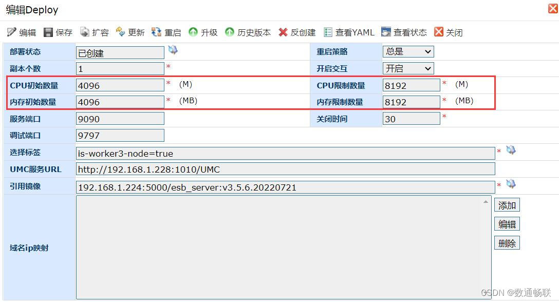 1.在创建容器时,需要调整容器的CPU和内存信息,调整内存为4G—8G。