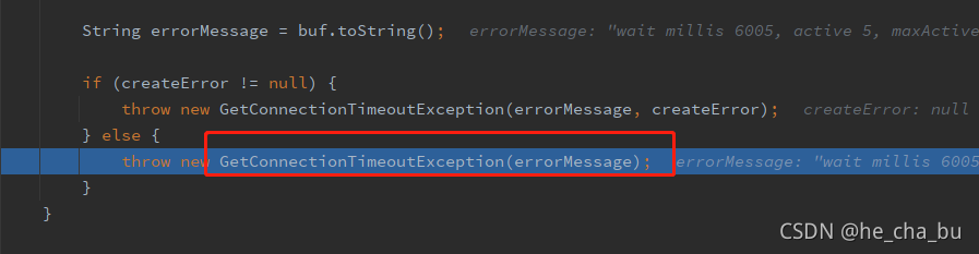 说着改成上述配置,试着debug观察了一下,发现Druid连接满后进入下面的代码段: