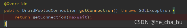 然后再看Druid的getConnection()方法会先初始化,然后返回一个连接。似乎没啥问题,那么问题来了,如果atomikos配置初始化20个连接,而Druid的最大连接只允许创建5个,那不就意味着atomikos连接池想从Druid这边获取20个连接不可行了吗?