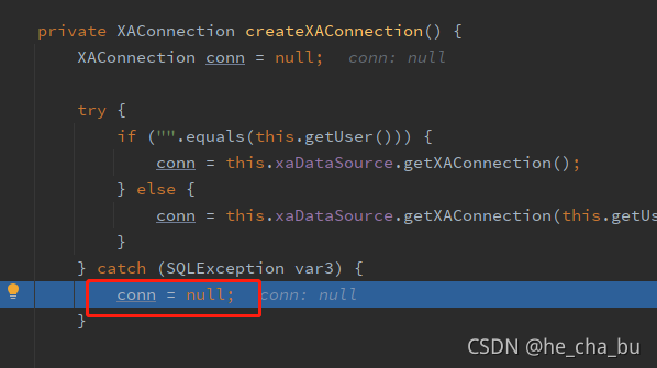 然后发现atomikos拿到异常后,直接处理返回连接为null