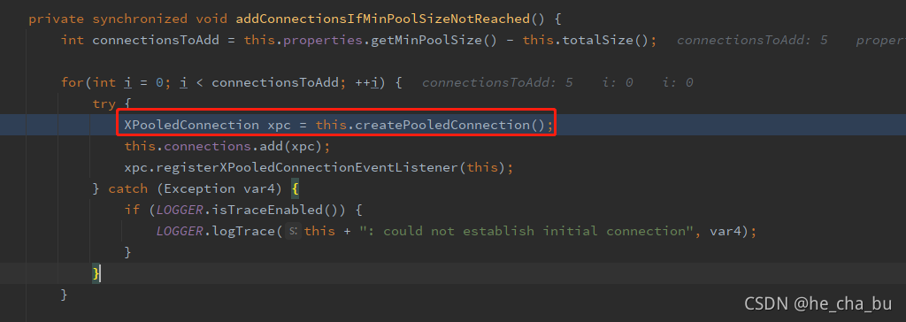 再返回看XA初始化这块逻辑会发现atomikos会自行初始化一个连接池,源码如下: