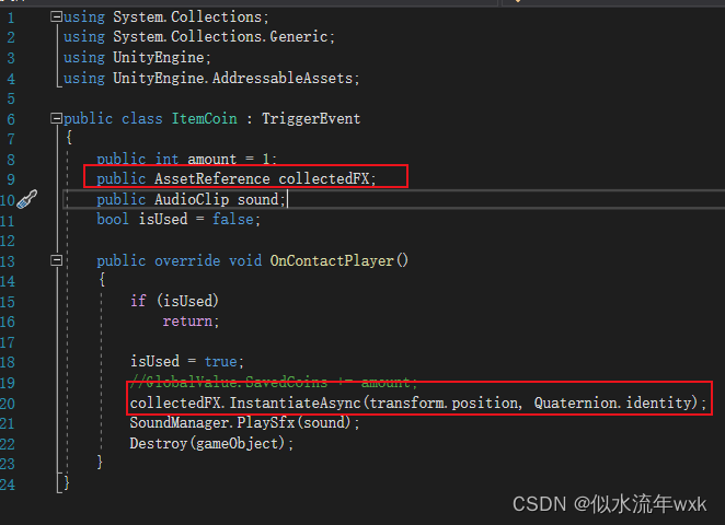 };(2)通过AssetReference加载资源,如下图,把勾选的资源挂在脚本的 AssetReference类型下,就可以通过这种方式实例化