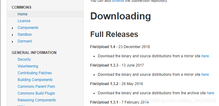 下载网址:http://commons.apache.org/proper/commons-fileupload/