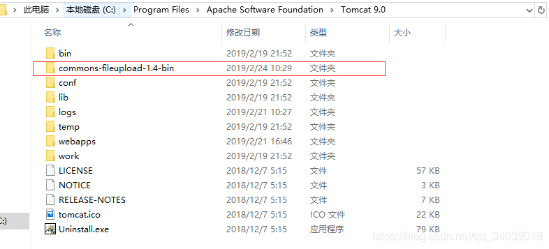 第二步:解压commons-fileupload-1.4-bin.zip,并将解压得到的文件夹commons-fileupload-1.4-bin复制到Tomcat安装目录下,C:\Program Files\Apache Software Foundation\Tomcat 9.0