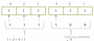 将二进制数值直接套入其中,0所对应的值不取,1所对应的值取出并相加;