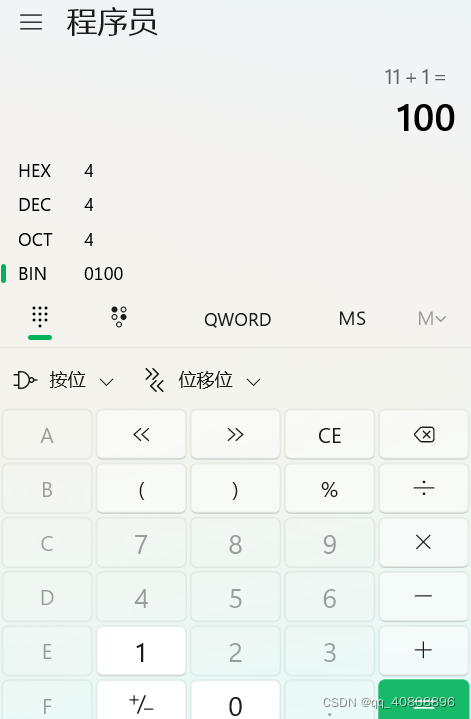 打开电脑中的计算器,点击1,再点击2;打开窗口如中间图片;计算0011+1结果为右边的图片;