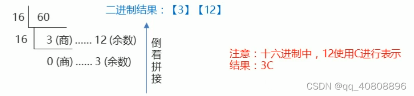 例如:将60的二进制0b111100转换位十六进制;