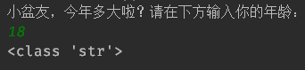 可以看到输入的"18"确实是str类型,这也就解释了为什么上面的代码中age可以不做转化直接与字符串进行拼接了。
