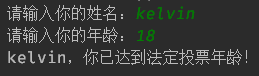 print(name + ",你已达到法定投票年龄!")