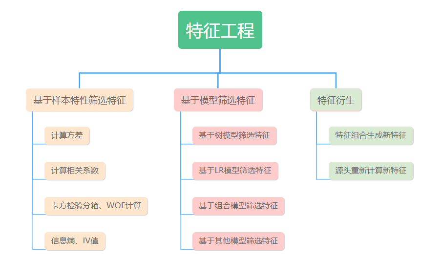 统计学知识,比如计算特征的方差、相关系数、分箱/WOE、IV值和信息熵等,筛选出结果比较好的特征。基于模型筛选特征: 将部分特征放入到模型中训练,筛选效果好的特征,适用于特征数据量比较大的场景,比较精确。