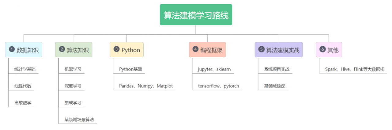 建议先把基础知识打牢,包括算法和数学知识,这样在后面会学的很轻松。 至于python、pandas、pytorch等全是工具组件,比较好入门。一开始不用铺开学习所有算法,建议学习一些常用的,后面根据具体场景实战中学习即可。