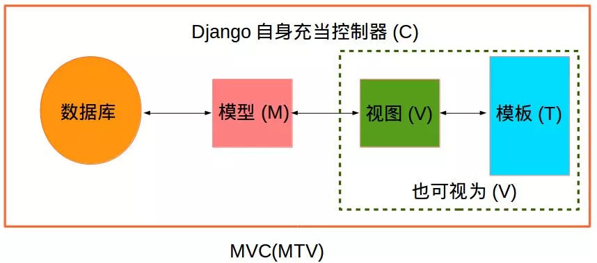 Django是一个开放源代码的Web应用框架,由Python写成。采用了MTV的框架模式,即模型M,模板T和视图V。如下图示: