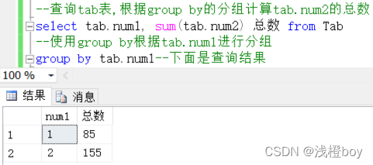 首先使用建立一个表,名为Tab,列名为num1的数值用来分组,列名为num2的作为组的数据,值得一提的是作为计算的num2的数据类型是为number类型,否则SUM()、AVG()这些计算型的聚合函数都使用不了,下面的案例将使用该表的数据进行介绍